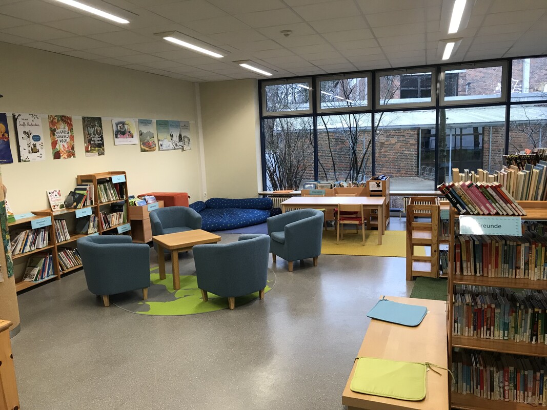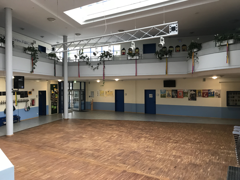 Zusätzlich können sich Kleingruppen in das Forum, die Schulbibliothek, den Mehrzweckraum und den „Wintergarten“ zurückziehen.